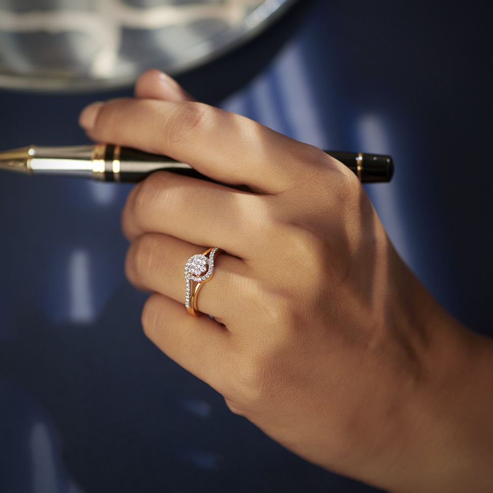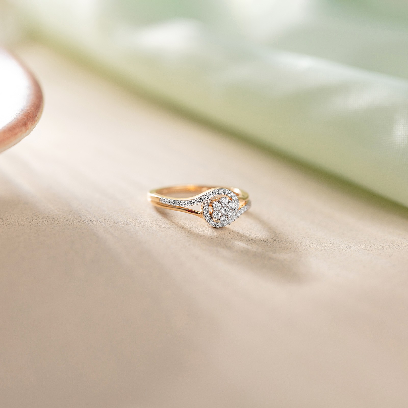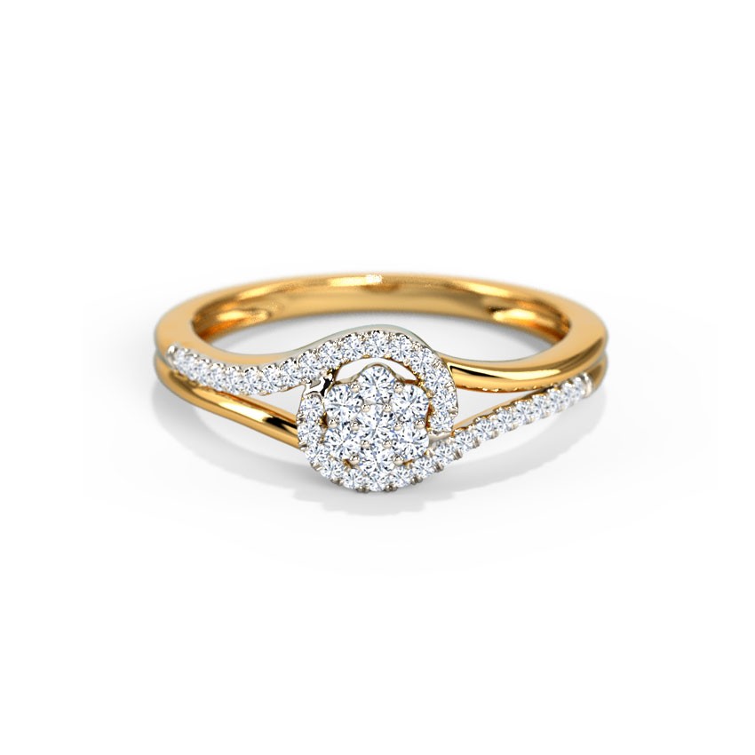 Elen Cluster Diamond Ring is a dazzling embodiment of elegance and sophistication. This exquisite ring features a central cluster of radiant diamonds, surrounded by a graceful swirl of additional diamonds set in a lustrous gold band. The intricate design amplifies the sparkle, making it perfect for any occasion. The Elen Cluster Diamond Ring is a timeless piece that adds a touch of luxury and brilliance to your jewellery collection, celebrating beauty and style.
