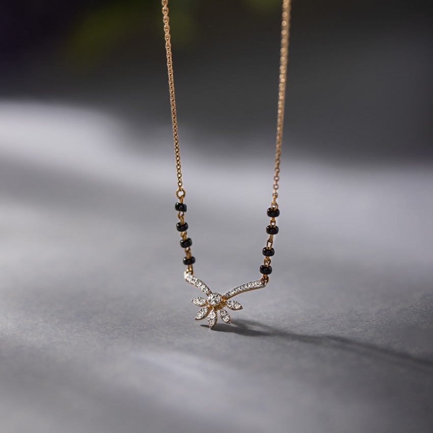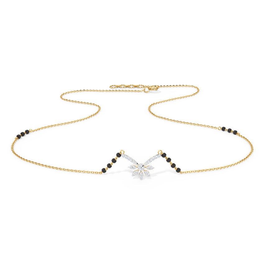 The Tania Diamond Mangalsutra by Innocence Diamond stands as the epitome of timeless elegance and beauty. Meticulously crafted in 14KT yellow gold and adorned with diamonds in a petal design, this mangalsutra harmoniously marries tradition with modernity. Whether for daily wear or special occasions, it elevates any ensemble with sophistication. Essential for every married woman who values both style and tradition, this piece transcends mere adornment, reflecting your distinct style and dedication. Secure yours today on Innocence Diamond.